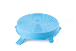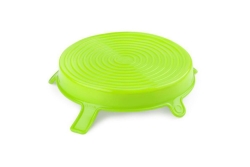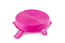 Stretchable silicone lid for safe coveraging of vessels, e.g. to protect against dust or splashing of solutions. The wide overlapping sides of the silicone lid closes well with the vessel wall. Suitable for temperatures from -40 °C to 180 °C. The prolonged exposure to solvents may cause swelling of the material.