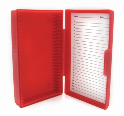 Stapelbare Kästen für 25 oder 100 Objektträger (26 x 76 mm).